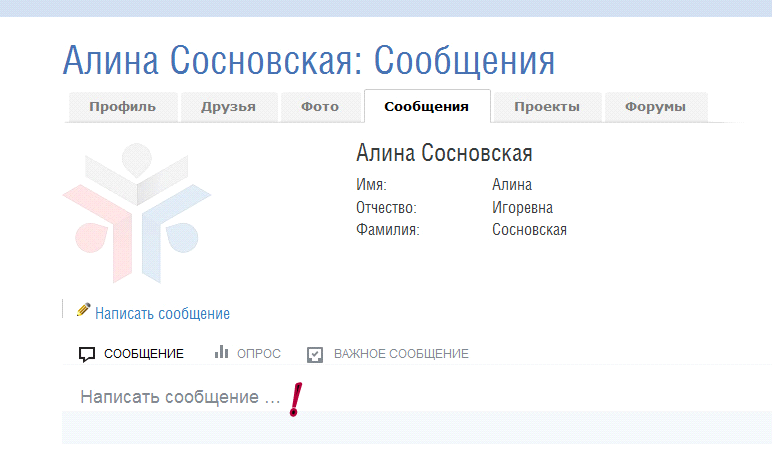 Чтобы завести Личный Блог нужно нажать на вкладку СООБЩЕНИЯ, она вверху, рядом с ФОТО(на скрине стоит восклицательный знак) Вы увидите такую табличку. Рядом с восклицательным знаком нужно написать текст сообщения. (делается это только в первый раз)
