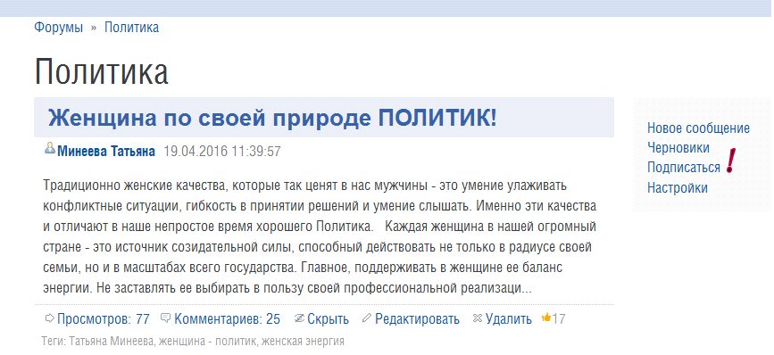 Форумы ( 24 форума) - http://союзженскихсил.рф/communication/forums/