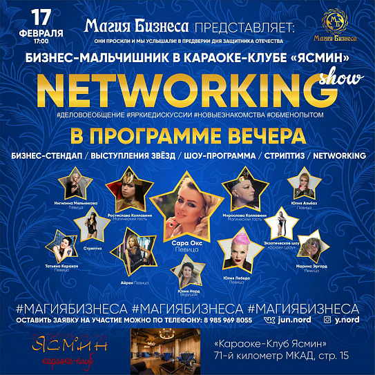 В преддверии Дня защитника Отечества для мужчин - бизнесменов шикарное NETWORKING SHOW! Которое не оставит равнодушным никого из гостей:
