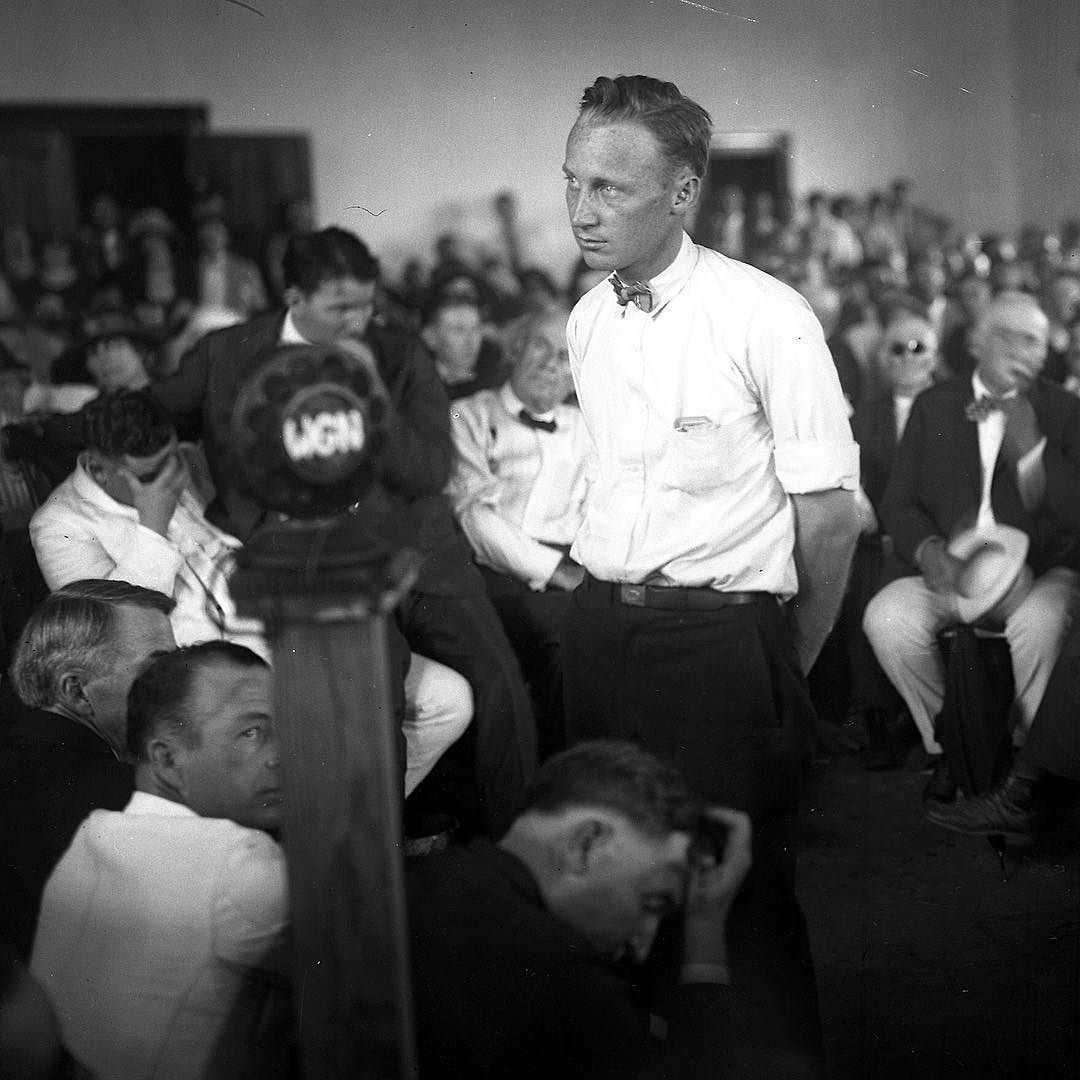 В 1925 году в штате Теннесси, США, был принят закон запрещавший учителям и преподавателям общественных школ и университетов отрицать библейское учение о происхождении человека и преподавать теорию эволюции человека от низших форм животных. Внесён членом Палаты Представителей штата Теннеси фермером и христианским фундаменталистом Джоном Батлером 21 января 1925 года, одобрен той же палатой 28 января, сенатом штата 13 марта, подписан губернатором штата Остином Пием 21 марта того же года. "Будет нарушен...