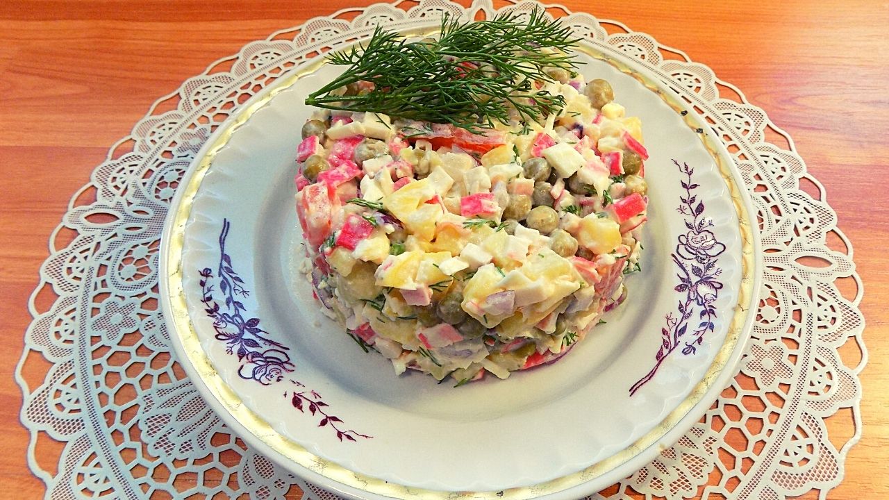 Салат из крабовых палочек с консервированным горошком
