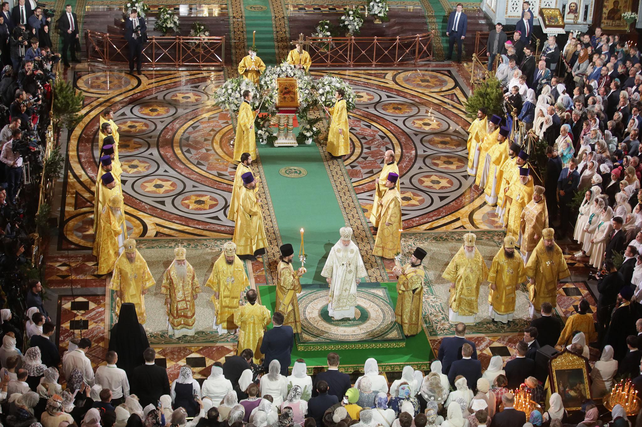 Праздничные службы проходят в более чем 30 тыс. храмов Русской православной церкви по всему миру. Патриарх Московский и всея Руси Кирилл по традиции провел ночное Рождественское богослужение в храме Христа Спасителя.