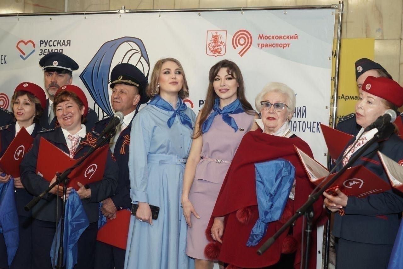 8 мая, в московском метрополитене, на станции метро «Курская» прошла акция «Синий платочек», которую организовали департамент транспорта и развития дорожно-транспортной инфраструктуры Москвы и московский метрополитен совместно с фондом «Русская Земля». Акция, автором и руководителем которой является президент фонда « Русская Земля» Анна Данилова, проводилась в рамках программы сохранения исторической памяти о вкладе женщин в победу и укрепление мира. Пассажиры могли получить синие платочки - символ ме...