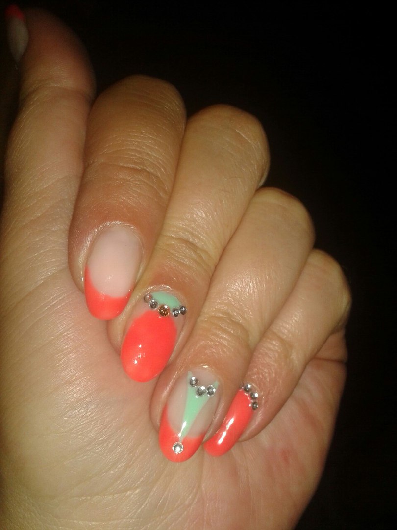 Сейчас буду хвастаться. ))) Мне сегодня невероятно повезло. Муж пришел с работы в обед и в этот момент мне позвонила маникюрша, у которой неожиданно освободилось время прямо сейчас. Вы не представляете, какое это счастье, спокойно оставить маленькую дочку дома с папой и отправиться на маникюр. Такие моменты выдаются в моей жизни крайне редко. ))) На радостях я тут же заказала и педикюр и вот что у меня получилось:Прелесть, правда? ))) А на ножках просто коралловый цвет, хожу сверкаю. ) Между прочим, коралл...
