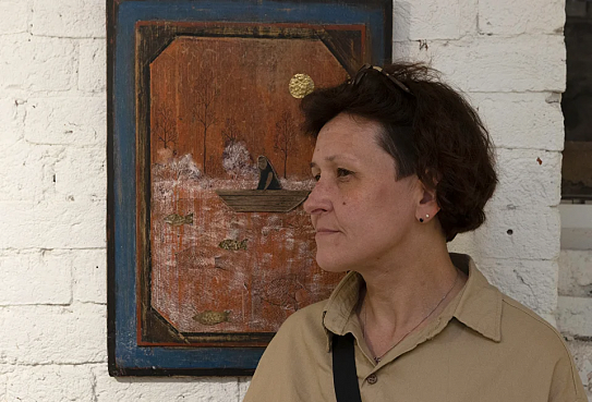 — Я никогда не придумываю сюжеты для работ. Они приходят сами. Когда мне привезли три доски, неровные, обтёсанные рубанком, из села Пыскор — есть такое у нас в Пермском крае, я сразу поняла, что это будет триптих и что это будет история жизни одной женщины.