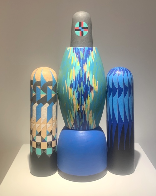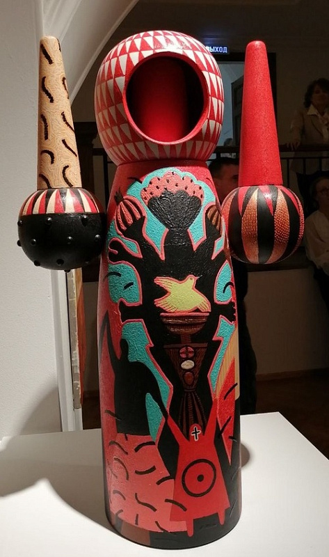 Авторские куклы Евгении Гольцевой – она назвала их матры – это отражение природных стихий в их высоком понимании: Земля, Вода, Воздух, Огонь. Все, что происходит в Космосе. Матра, конечно же, не матрешка, которая вроде как стала символом всего русского. Мы привыкли к ней, разрисованной , яркой, порой аляповатой. Она стала модным сувениром, игрушкой. Матра Гольцевой – это да, расписная кукла по внешней сути и абсолютно новое прочтение куклы как таковой. Они сделаны из липы, символизирующей в культурах практически всех народов мягкость, нежность и женственность. Главное в матре – форма и символы в росписи. Ну, и конечно, цветовая гамма. Есть матры с лицом и даже глазками, в других вместо головы нечто вроде шлема, неважно. Некоторые похожи на инопланетян, случайно оказавшихся на Земле. Но ничего случайного на самом деле нет, потому что если приглядеться, оттолкнуться от названия, всё предельно ясно: матры живут среди нас, создавая уют и общаясь с природой, они обобщают, смеются и предостерегают. Они как обереги – помогают жить. Просто жить…