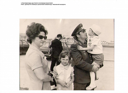 - Я это не очень хорошо помню. Помню один эпизод. Мы приехали в Центр управления полётами (ЦУП) во время длительного полёта папы на переговоры. Я вспоминаю шикарную, как мне казалось, комнату с кожаной мебелью и телевизором. Слова инженеров, что «через несколько секунд они войдут в зону видимости, и вы сможете поговорить с экипажем». Проходит несколько секунд, и мы видим папу и дядю Сашу (Иванченков, ред.), и на них надеты галстуки. Они нам говорят: «Ой, какие вы нарядные!», а мы - им: «Ой, а вы-то какие нарядные!!!». Но такого непринуждённого разговора, когда общаются близкие люди, не получалось. Вокруг сидят сотни сотрудников ЦУПа, которые всё это дело обеспечивают, прослушивают все разговоры. Перед сеансом с нами провели инструкцию, сказали обязательно махать руками, приветствовать, улыбаться, что, в принципе, мы и делами с великим усердием. А в конце видеосвязи вдруг нам говорят, что, мол, сломался какой-то там прибор, и они вас не видят. А мы так старались!