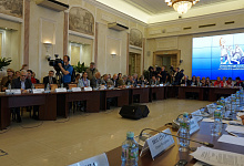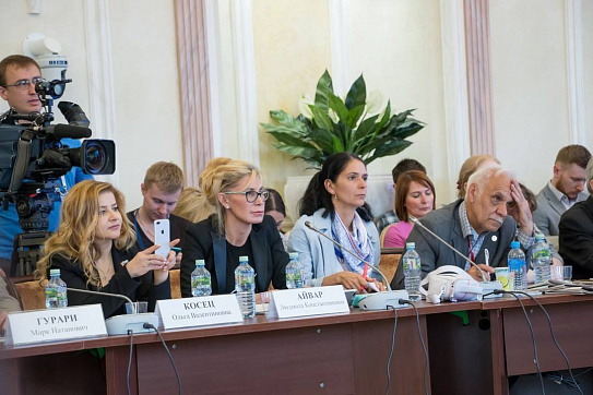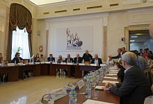В нарядном зале, где обычно проходят заседания научно-консультативного совета при ОП РФ и наиболее важные мероприятия, более ста двадцати слушателей рассадили вокруг огромного овального стола в три плотных ряда, выделив первый с закреплением мест для выступающих. В центре стола – Н. Гончар, А. Кучерена, С. Орлов, Ю. Княжевская, заместители секретаря ОП РФ А. Музыкантский, Л. Михеева, председатель комиссии по развитию социальной инфраструктуры, местного самоуправления и ЖКХ И. Шпектор, взявший на себя роль модератора.