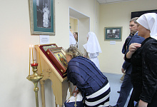 Валентина Евгеньевна рассказала о том, как перед операциями святитель Лука освещал хирургическое поле, а на месте, где предстояло сделать разрез, наносил йодом крест. «Профессия врача - это прежде всего служение ближнему и ответственность перед Богом. Войно-Ясенецкий был не только великим ученым, но и владел исцеляющим словом, наполненным любовью, верой и надеждой. Поэтому так высока актуальность выставки именно в стенах лечебного заведения», - сказала Валентина Кустова.