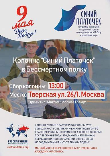 Колонна "Синий платочек" символизирует солидарность с великим женским подвигом во спасение Родины во время Великой отечественной войны, а также в тяжелые послевоенные годы. Это дань памяти воинам, погибшим на полях сражений. Современная молодежь помнит и чтит великий подвиг.