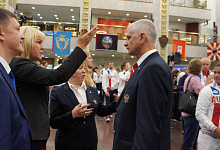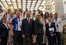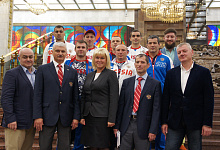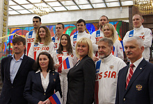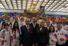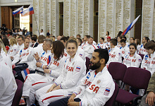 Пожелать успехов спортсменам пришли председатель комитета Государственной Думы по физической культуре, спорту, туризму и делам молодежи Михаил Дегтярев, трехкратный олимпийский чемпион и депутат Государственной Думы Александр Карелин, член Совета Федерации Эдуард Исаков, пятикратный паралимпийский чемпион и генеральный секретарь Паралимпийского комитета России Андрей Строкин, сурдлимпийский чемпион и президент Сурдлимпийского комитета России Александр Романцов. Благословление Русской Православной Церкви спортсменам передал руководитель управления по работе с общественными организациями Синодального отдела по взаимоотношениям Церкви с обществом и СМИ протоирей Димитрий Рощин.