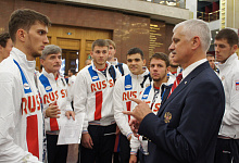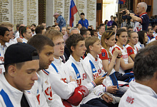 По традиции делегацию провожали в Зале Славы Музея Победы на Поклонной Горе. Директор музея Александр Школьник отметил, что после проводов в Зале Славы спортсмены всегда привозят золотые медали. Он уверен, что именно герои, чьи имена увековечены в Зале Славы, вдохновляют олимпийцев на новые рекорды и победы.