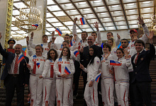 К сожалению, на церемонии присутствовали не все члены сборной. Вдохновиться смогли команды по бадминтону, баскетболу, волейболу, вольной и греко-римской борьбе, гандболу, гольфу, карате, пляжному волейболу, пулевой стрельбе, теннису, тхэквондо и футболу. Уже отбыли в Турцию команды по лёгкой атлетике, плаванию, боулингу, спортивному ориентированию, велоспорту-шоссе и маунтинбайкингу. Вне Москвы продолжают тренироваться команды дзюдо и настольного тенниса.